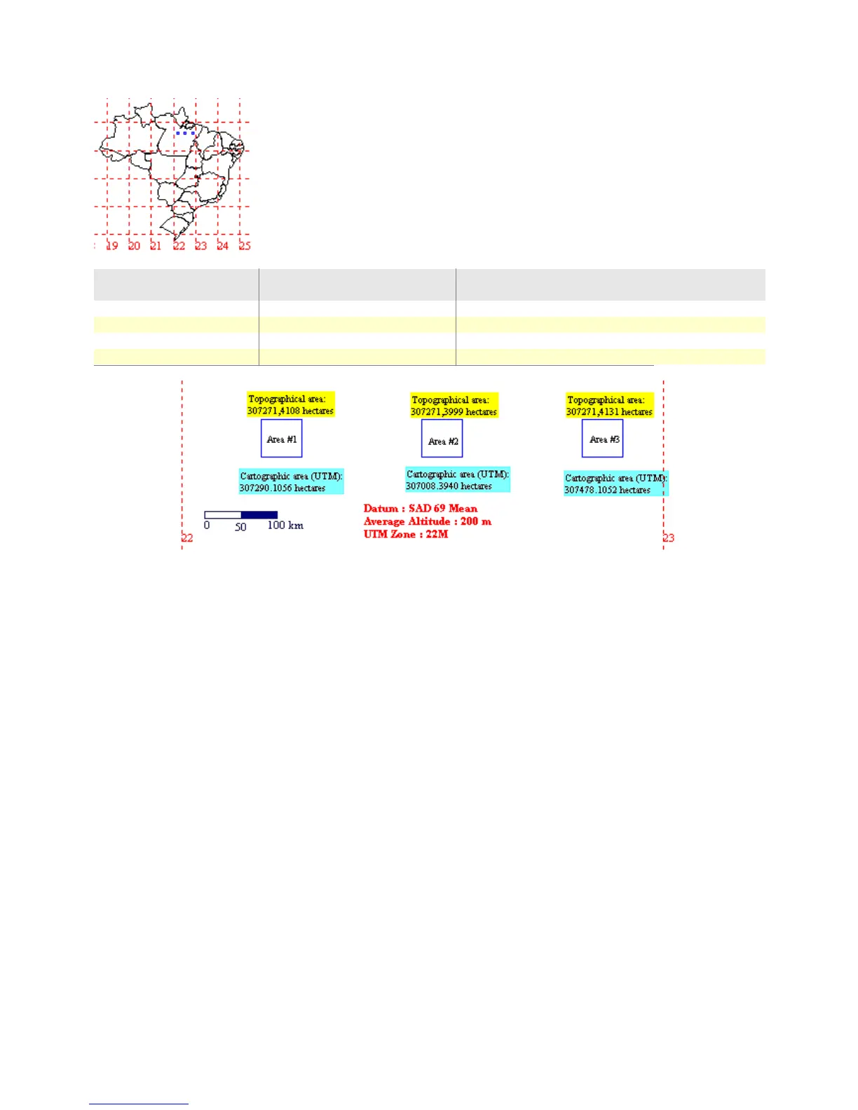 extremities and in the center of the UTM 22M zone, in Para State/Brazil.