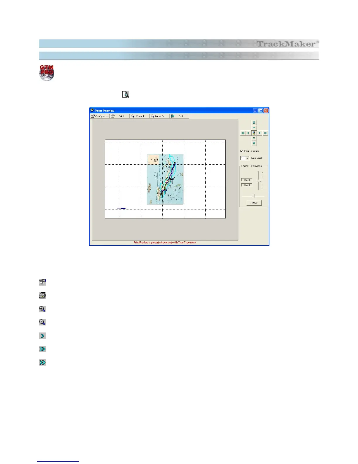 function allows to view the map on screen before sending it to printer. To access it, choose