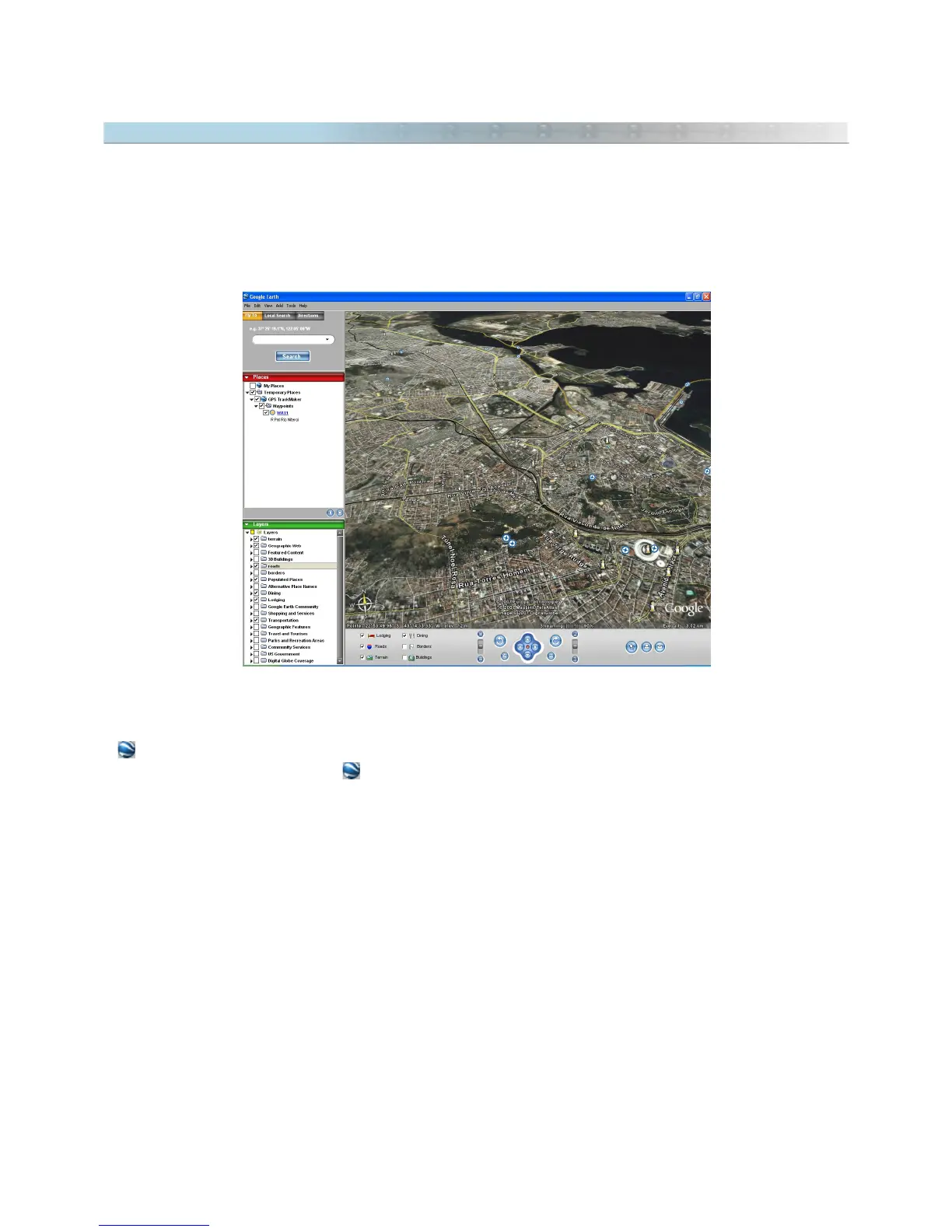 - In Real-Time Navigation, press to see the current position in Google Earth®.