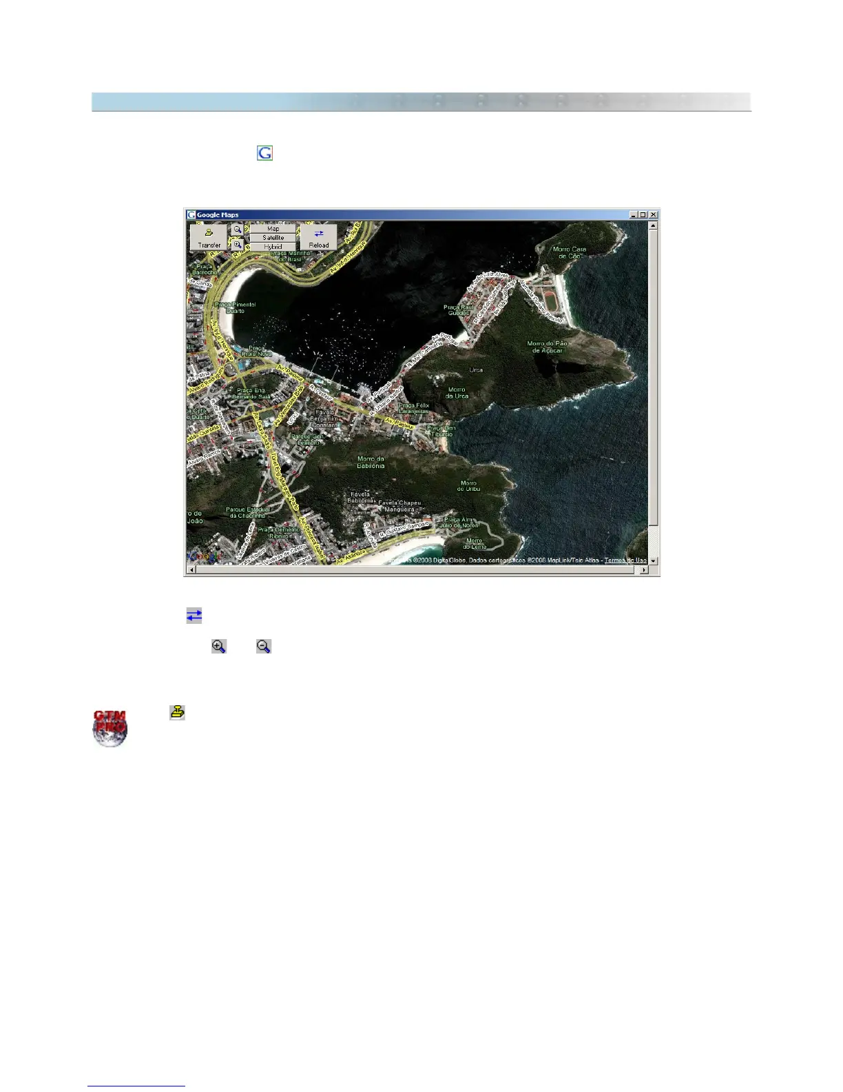 Press to transfer the georeferenced image from Google Maps® to the main screen of GPS TrackMaker