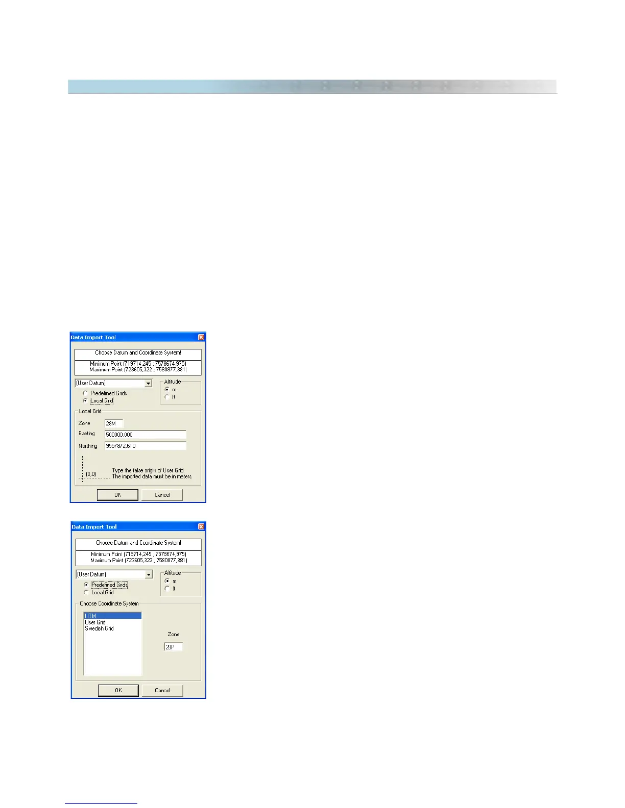 indicate the datum and the zone, in cases of file import in rectangular grids such as UTM. See Datum Table to