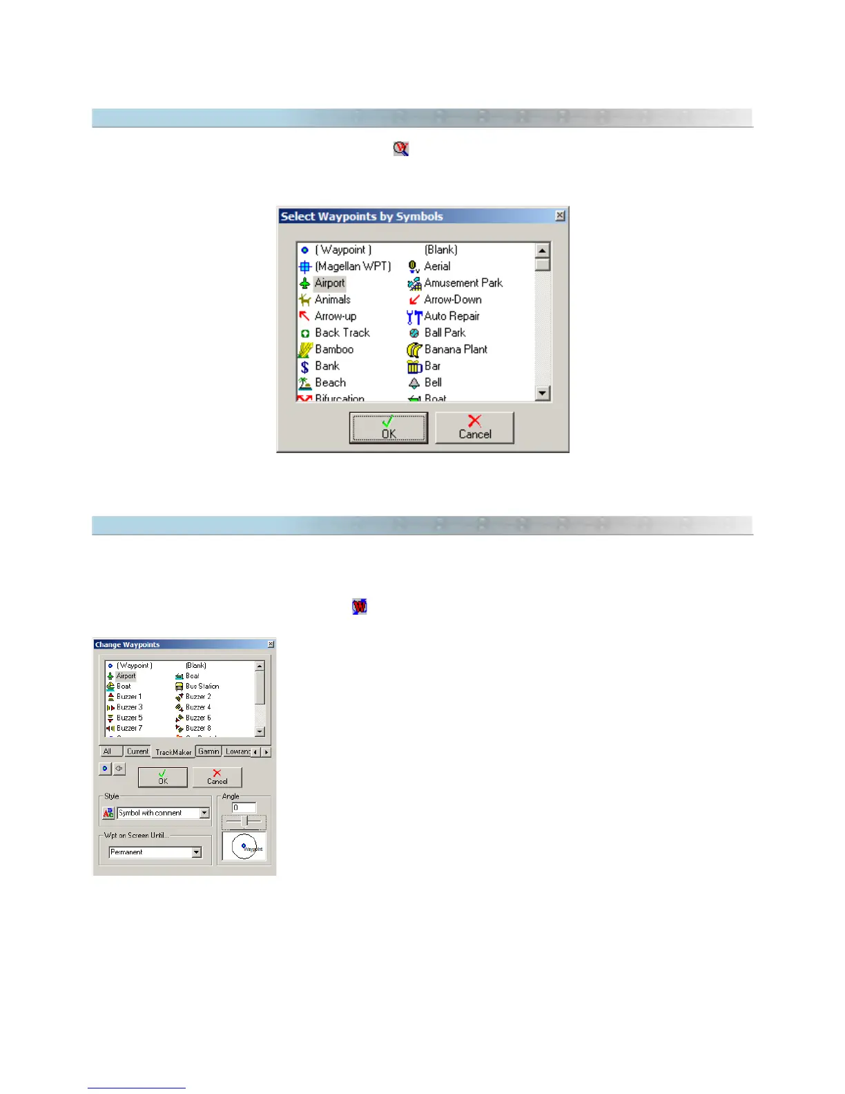 used in the file will appear. Just click on one of the icons and the program will select all the Waypoints that have