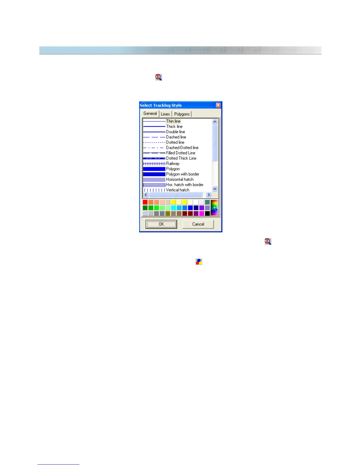 color of Tracklogs will be selected. After choosing one of the styles and its color, press the <OK > button. The