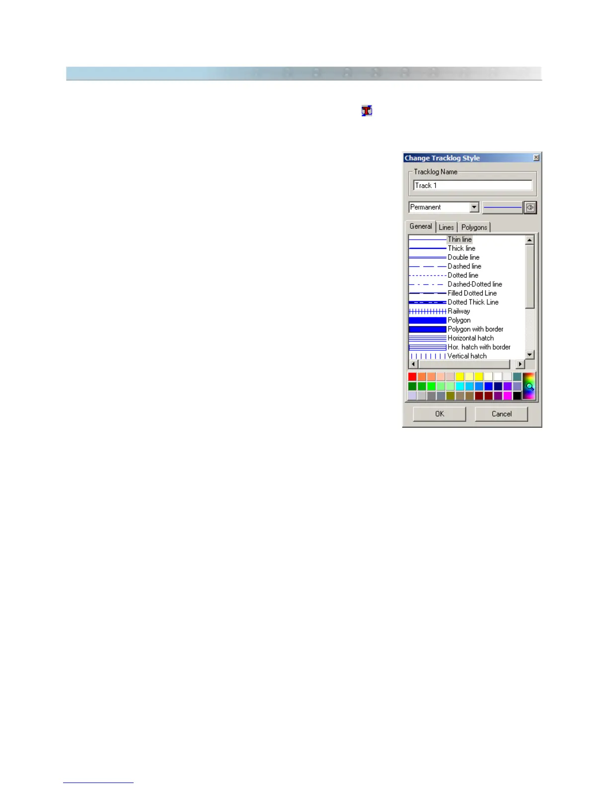 The Tracklog style editing window will appear with the following options: