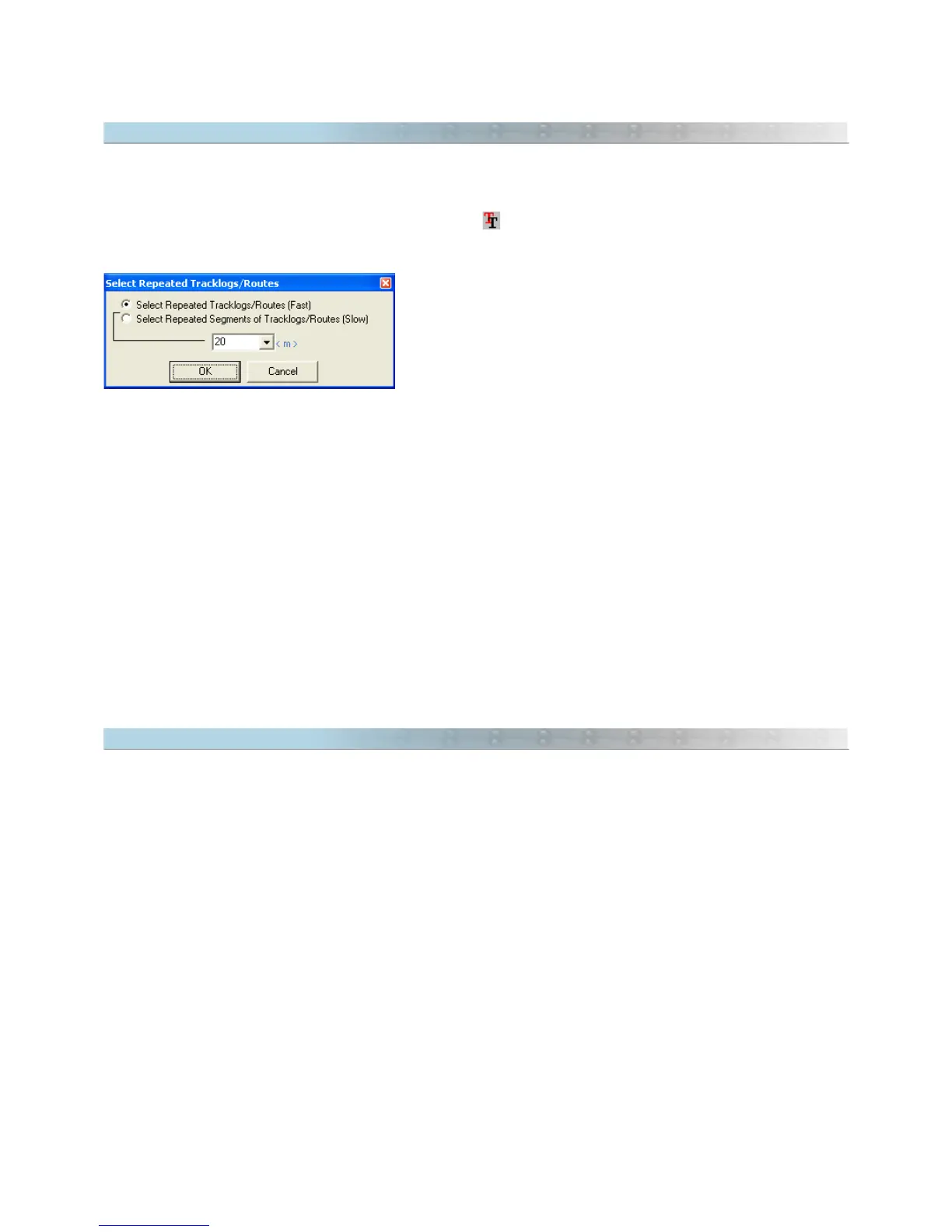 defines the selection of repeated Tracklogs/Routes located exactly in the same position, without any