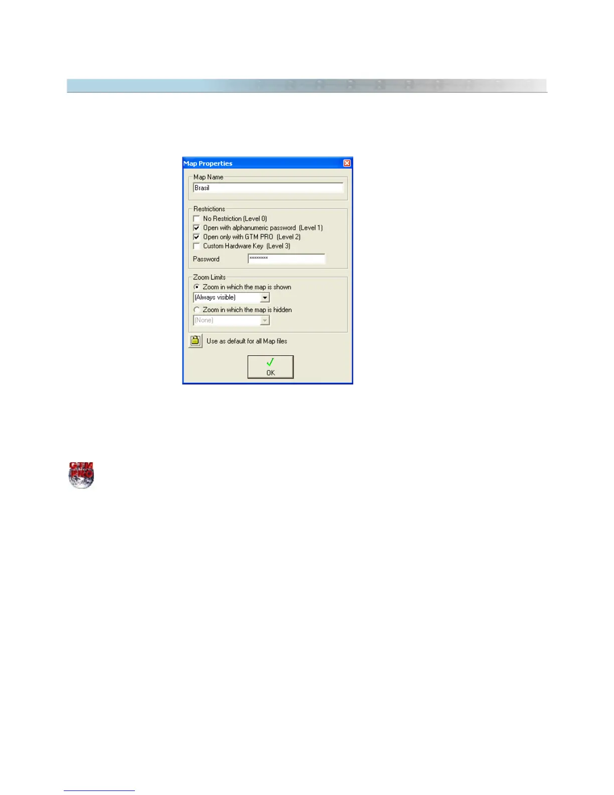 The Map Properties applies only to MAP files. However, the parameters of configuration are also saved in GTM