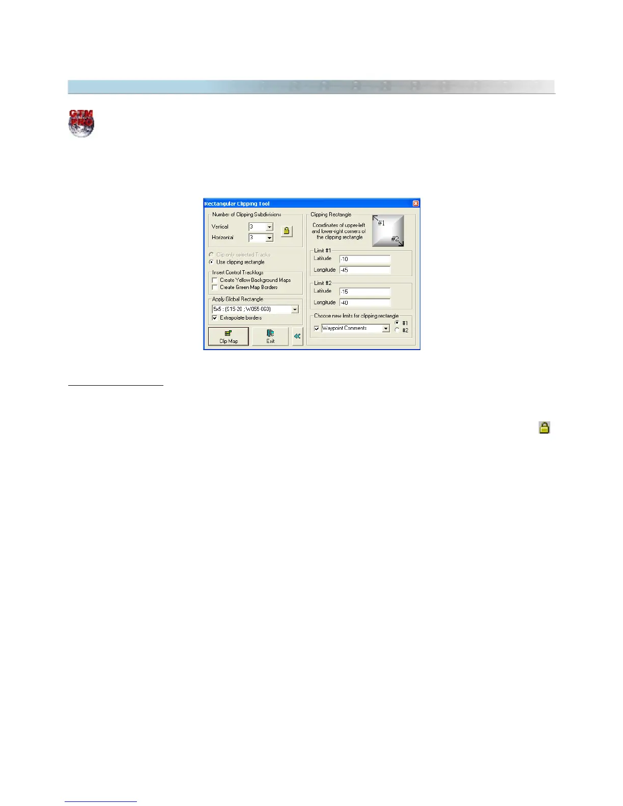 The Rectangular Clipping Tool is an advanced resource that allows clippings in Tracklogs and Waypoints, dividing