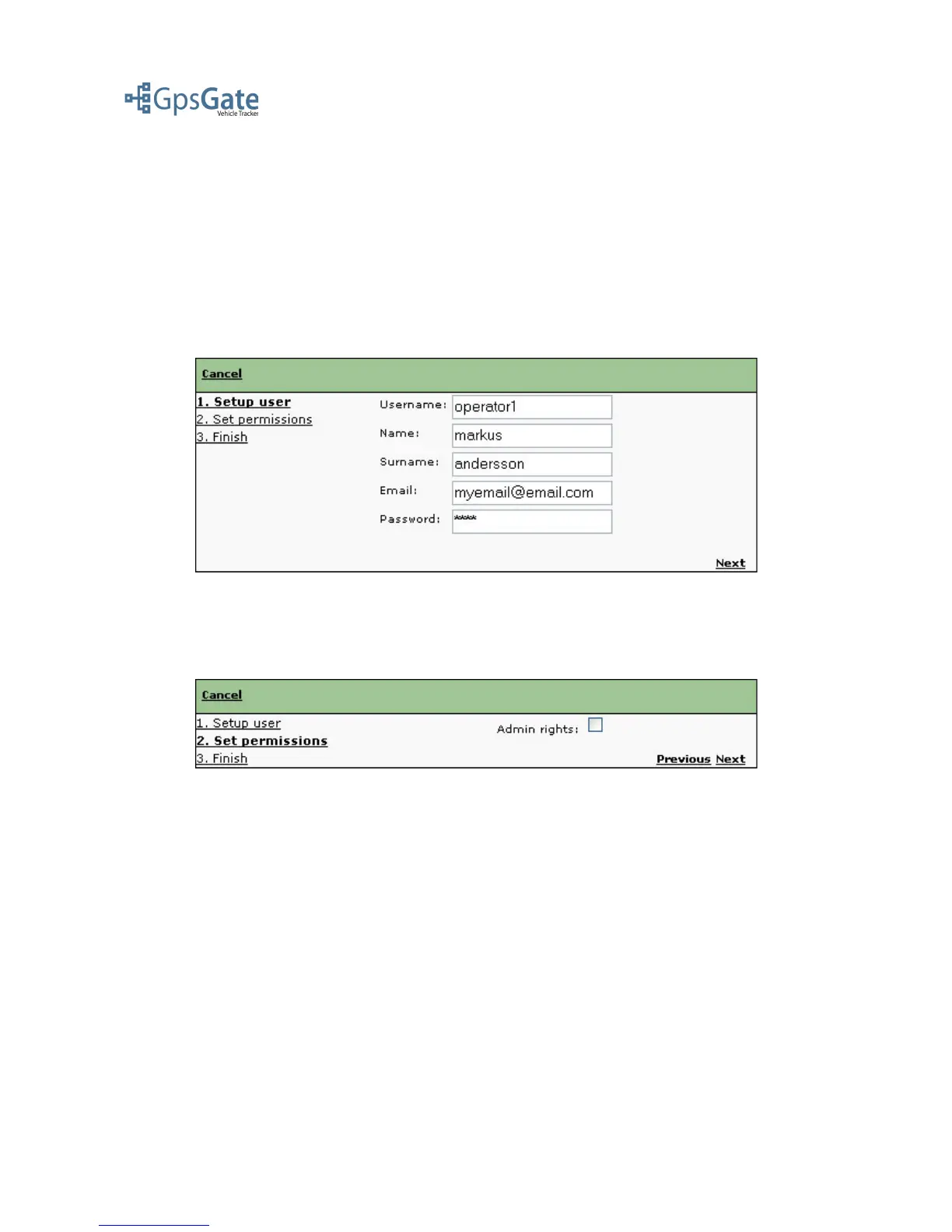 Create a User by clicking on the Admin menu and selecting “add User”, this will open up a window