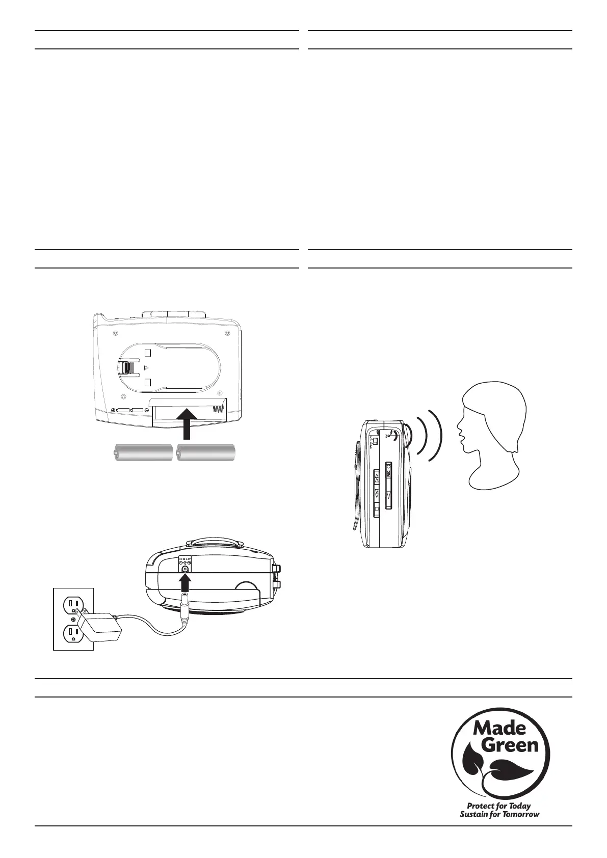 cassette and the cassette player. Use only high quality tapes with a duration less