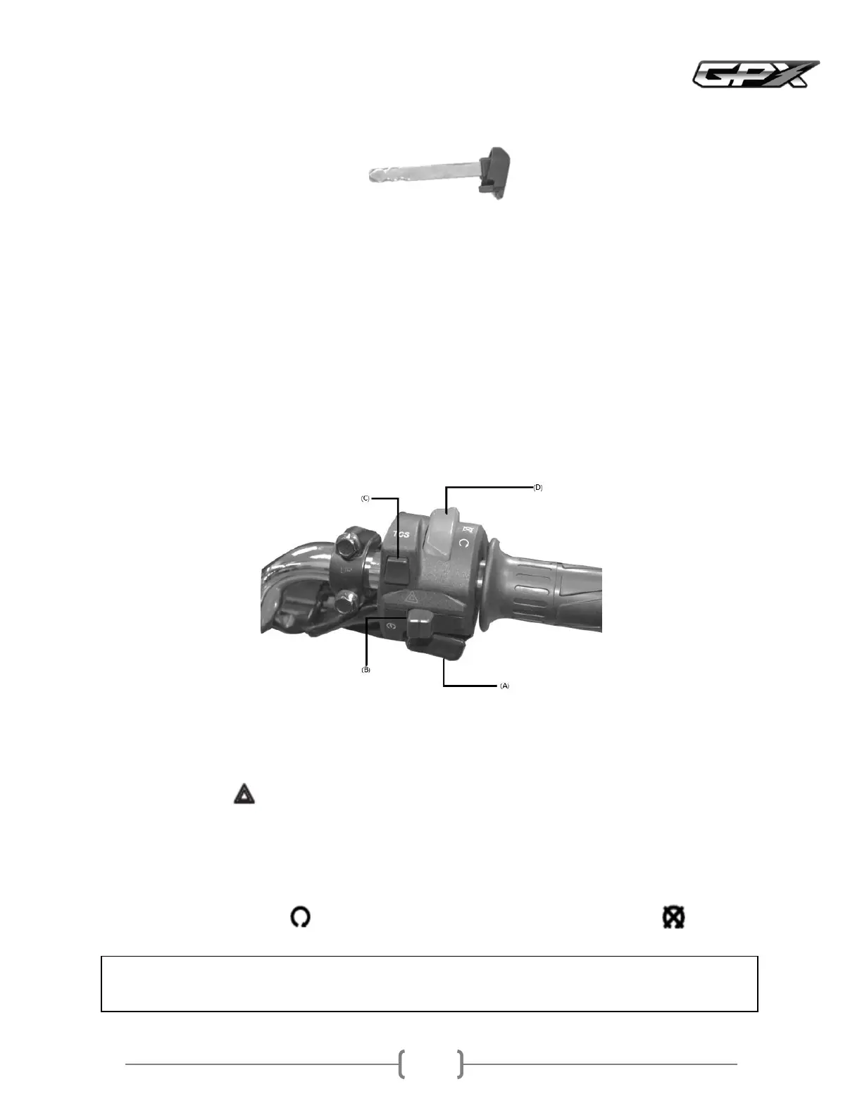 This switch should normally be in position to allow the motorcycle to runIn an emergency, switch to turn off