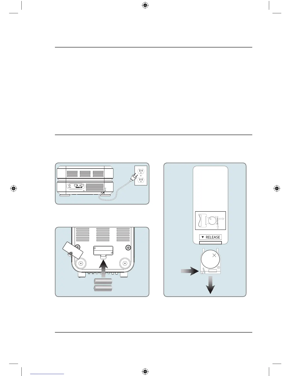 Connect the included speakers to the SPEAKER OUTPUT on the back of the music system. The speaker to the right