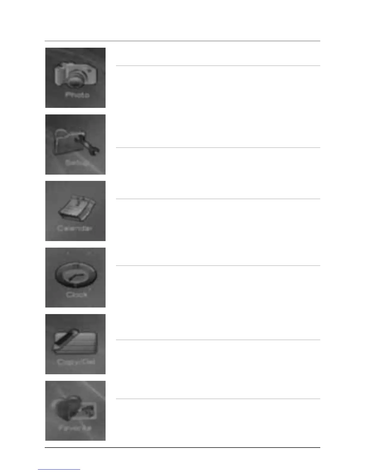 Select the Favorite option to view pre-loaded photos on the unit.