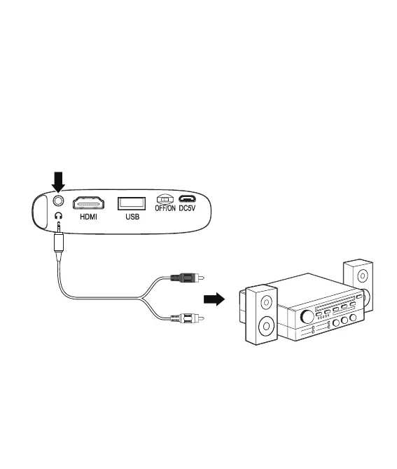 to external powered speakers or headphones. The projector will automatically