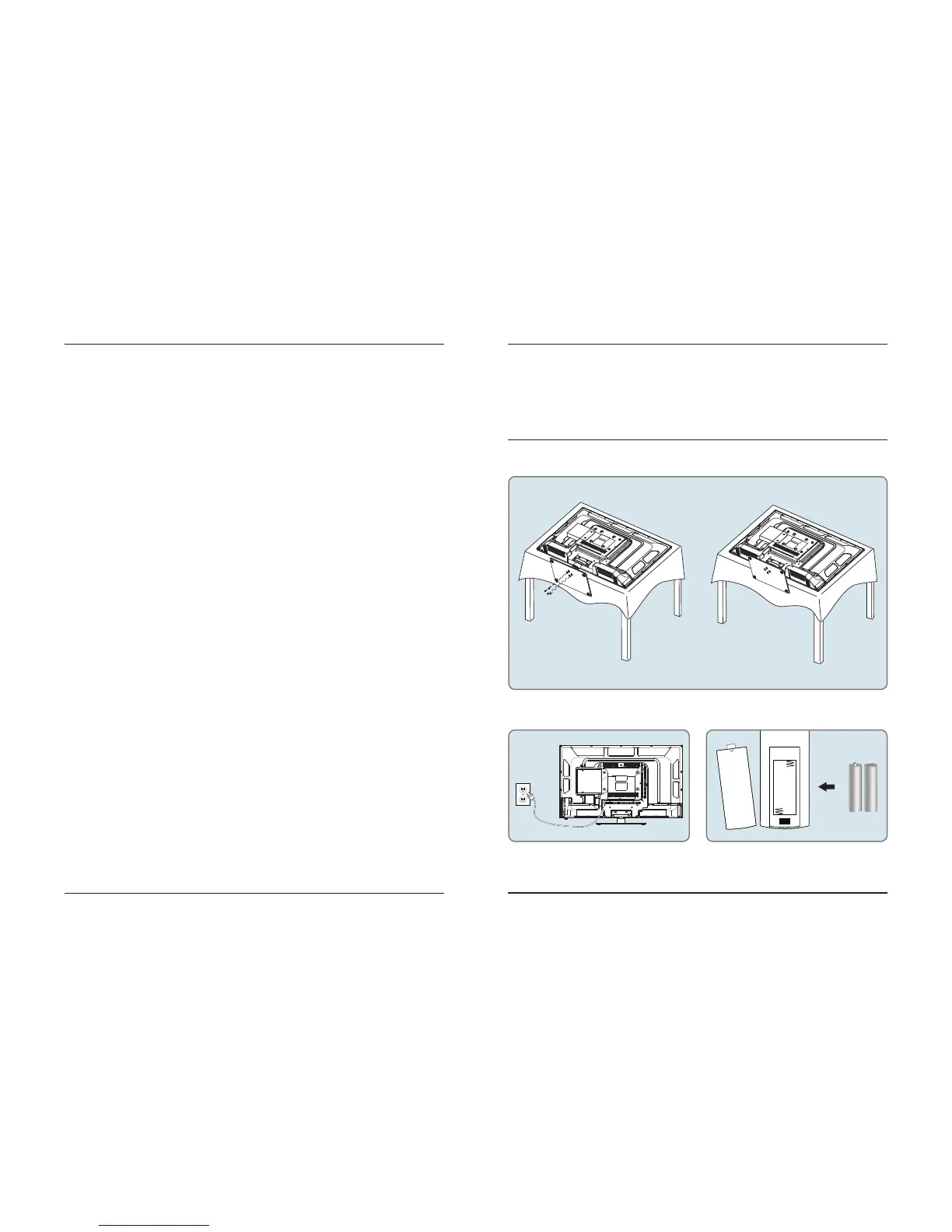 When placing TV on flat surface, be careful not to push, scratch, or otherwise damage the front of the TV and LCD