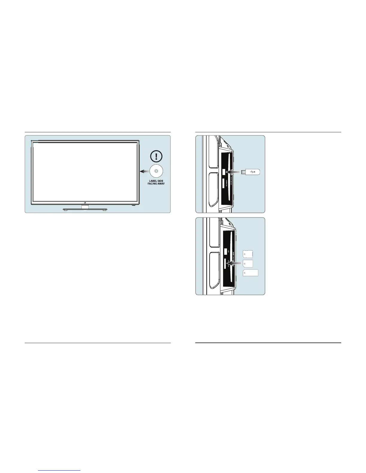 1. Insert a DVD or CD into the slot-load disc drive, with the label side facing the rear of the television. Once a