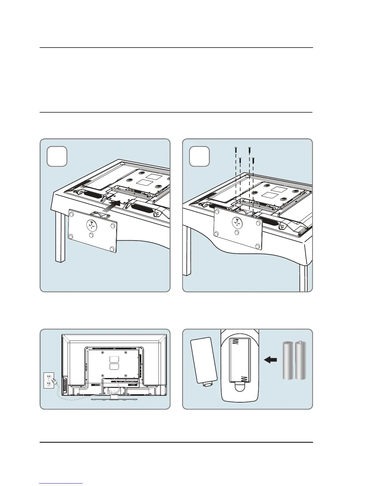 screwdriver, tighten the screws by hand. Using a power drill could damage the TV stand.