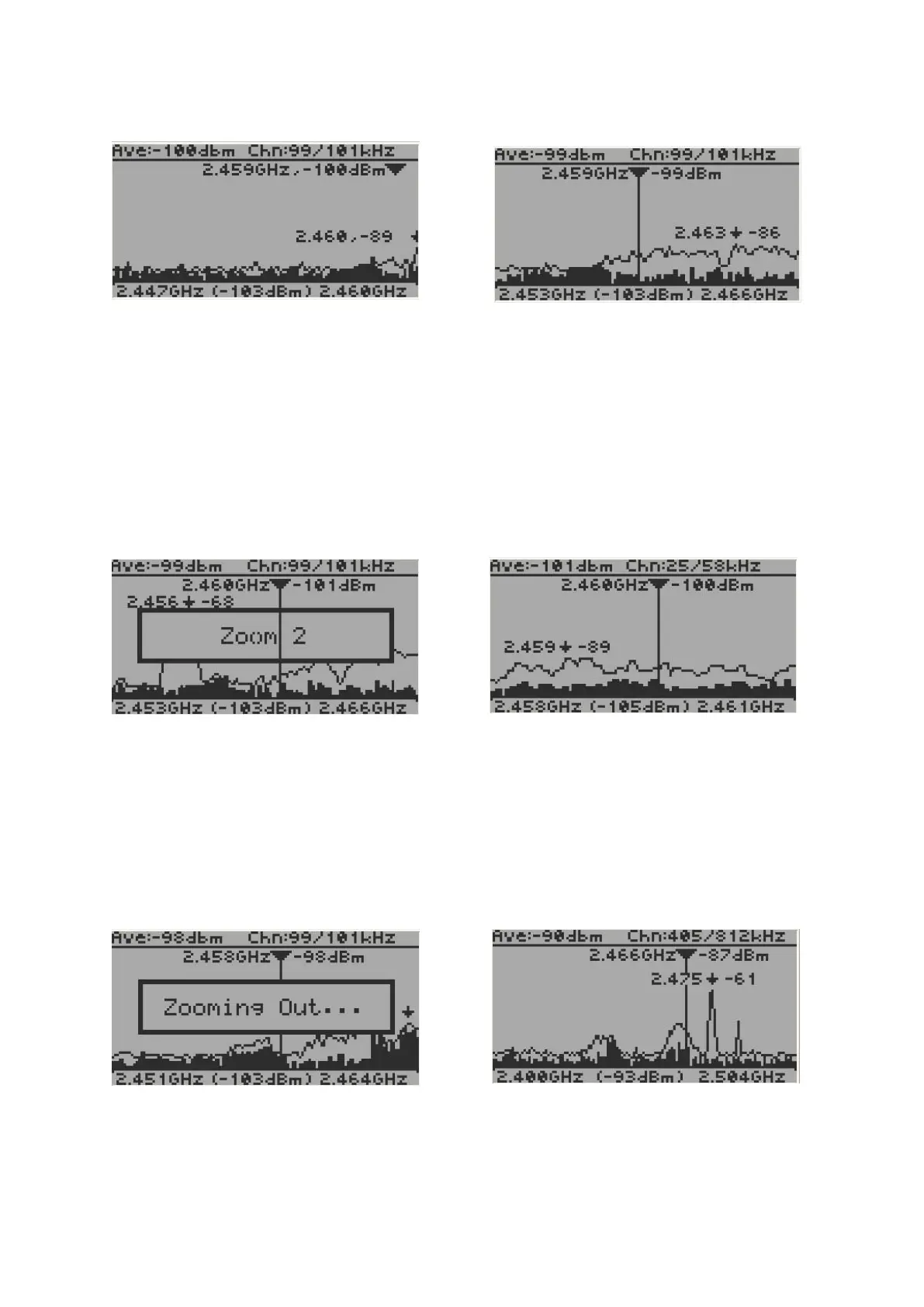 level 2 zooming. the start and end frequency scope changed from 2.453GHz-2.466GHz to 2.458GHz-
