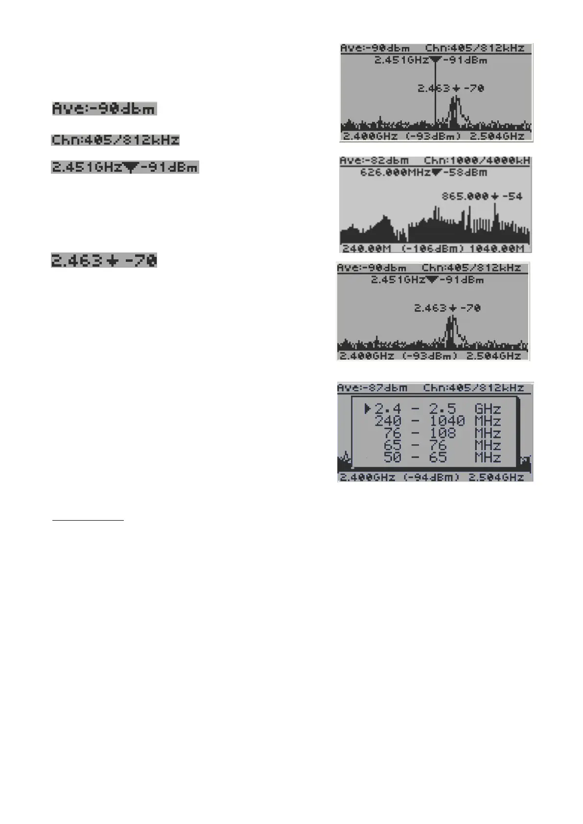 Peak cursor (2.463GHz, -70dBm): The peak value in the