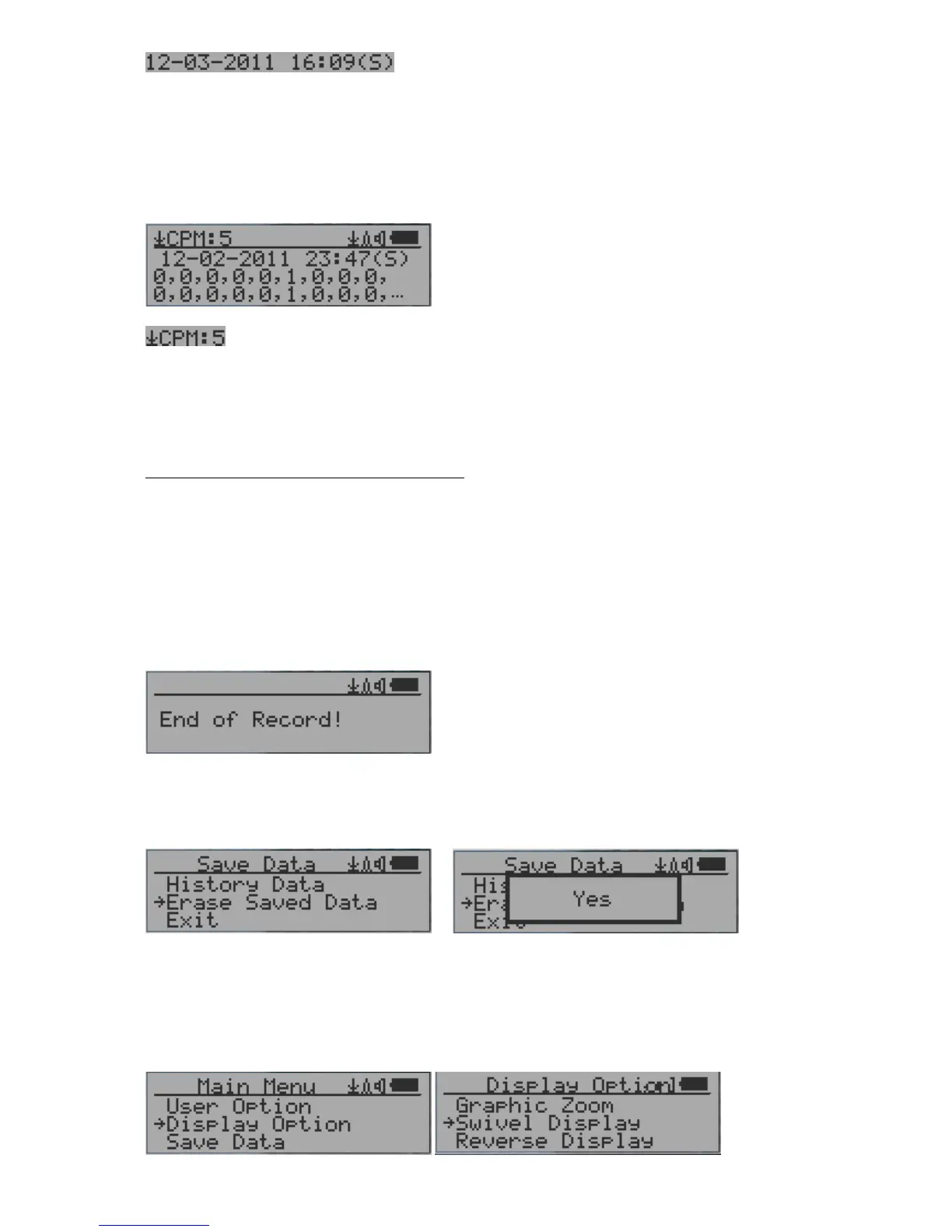 seconds with Yes confirmation, the unit will start to erase entire saved history data. It may