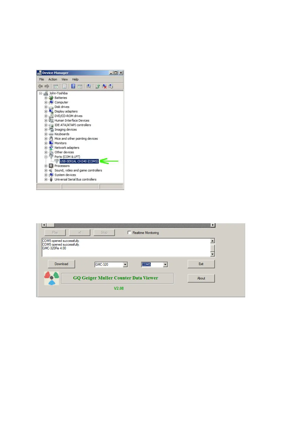 see which COM port is assigned to the GMC-320 Plus. See the example below. Windows