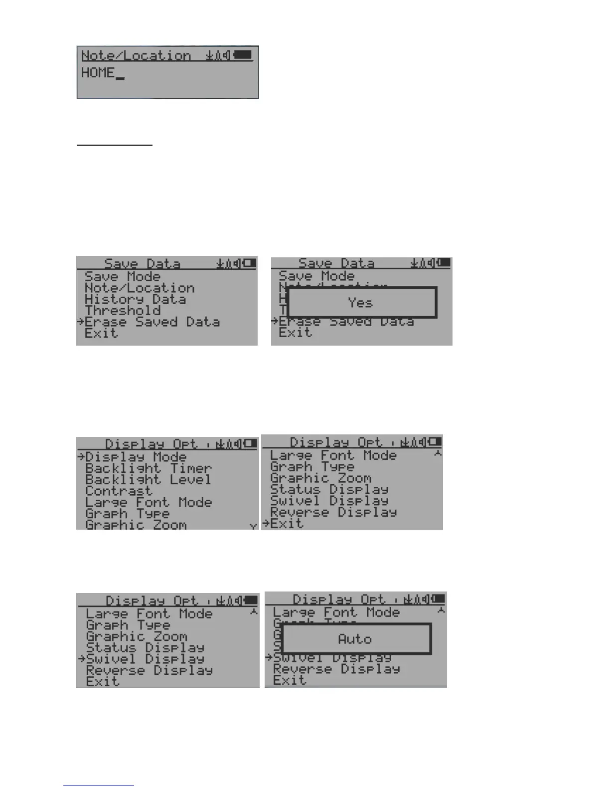 Yes confirmation, the unit will start to erase entire saved history data. It may take a few seconds to