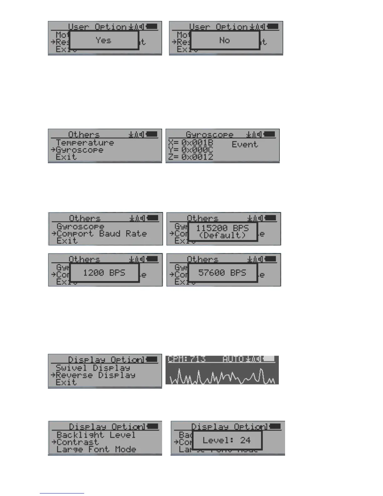 This Geiger counter serial communication baud rate is selectable from following value: