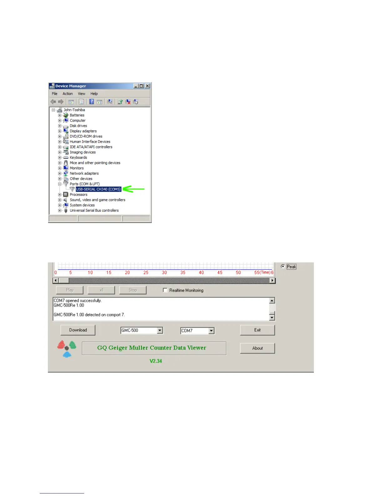 Once the GMC-500/GMC-500+ is connected to a computer, from the device manger, you should