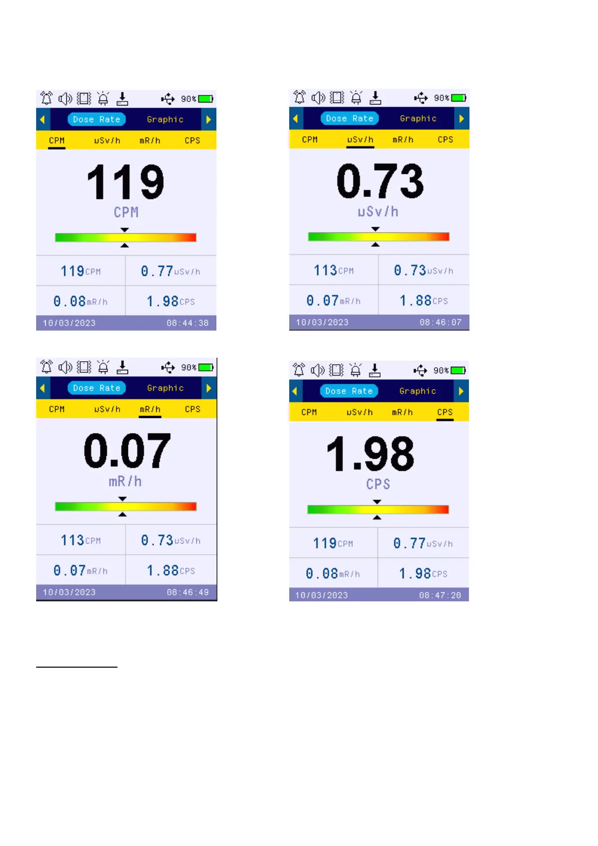 Key2: CPM,µ, Sv/h, mR/h, CPS selection
