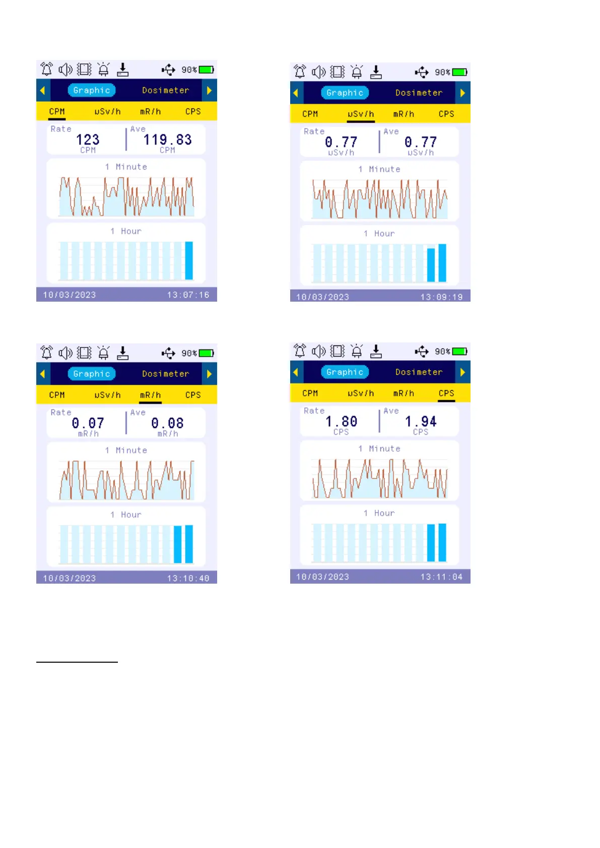 Key2: CPM,µ, Sv/h, mR/h, CPS selection