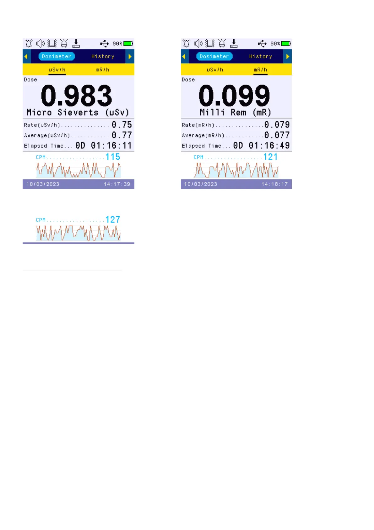 Key2: µSv/h, mR/h
