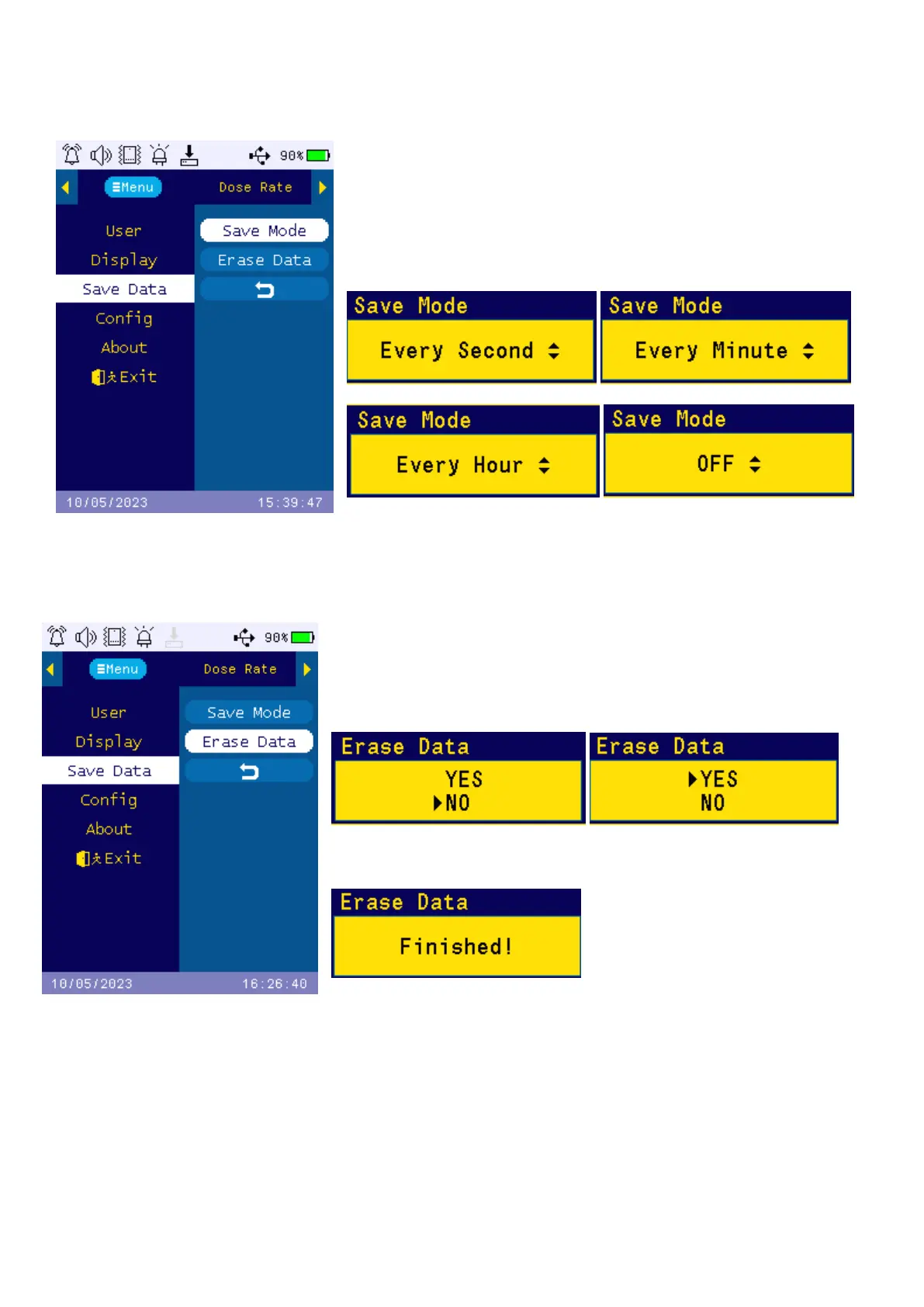 Erase Data will completely delete all history data in flash memory. The