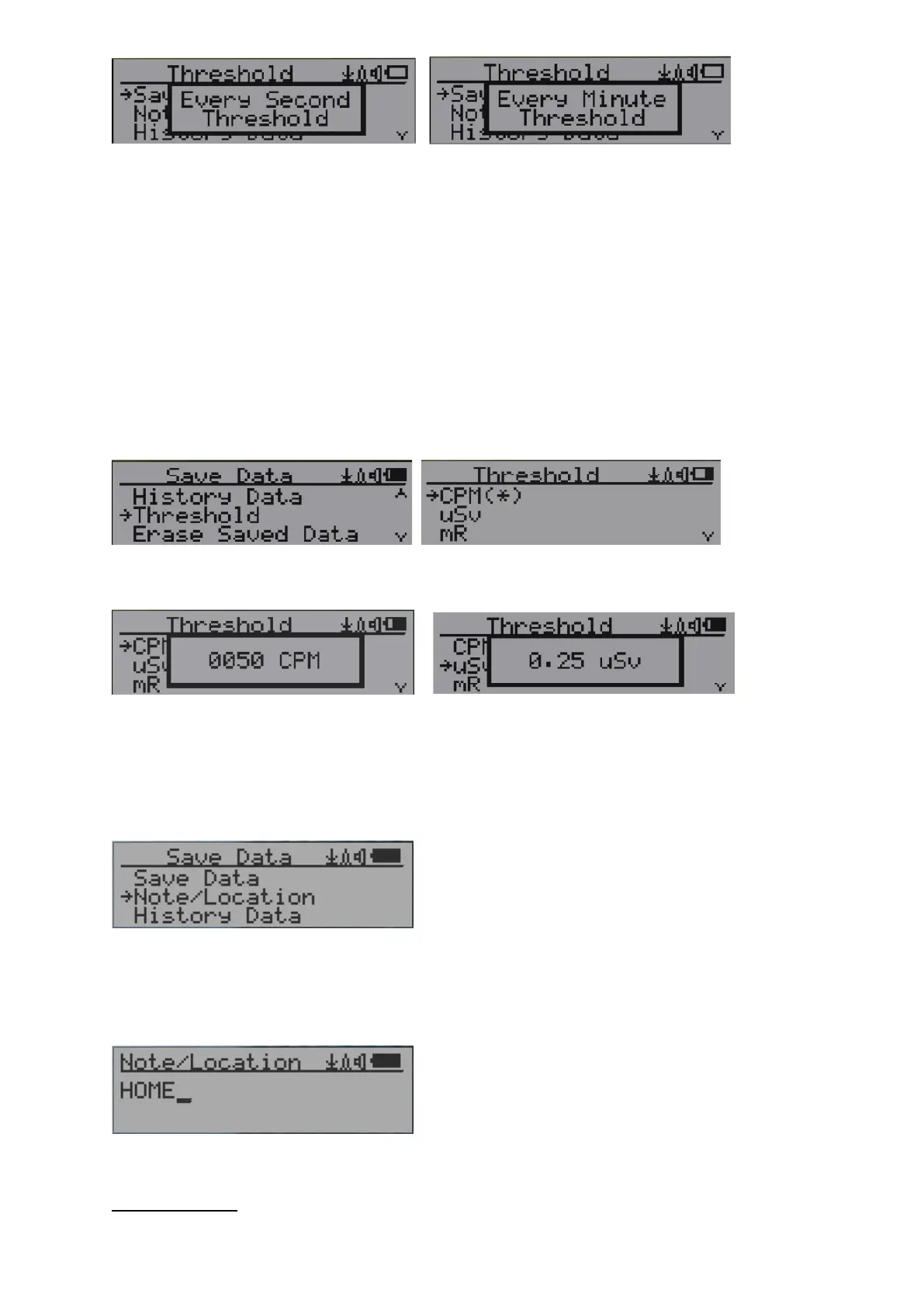 OFF -> Every Second ->Every Minute -> Every Hour->Every Second Threshold->Every