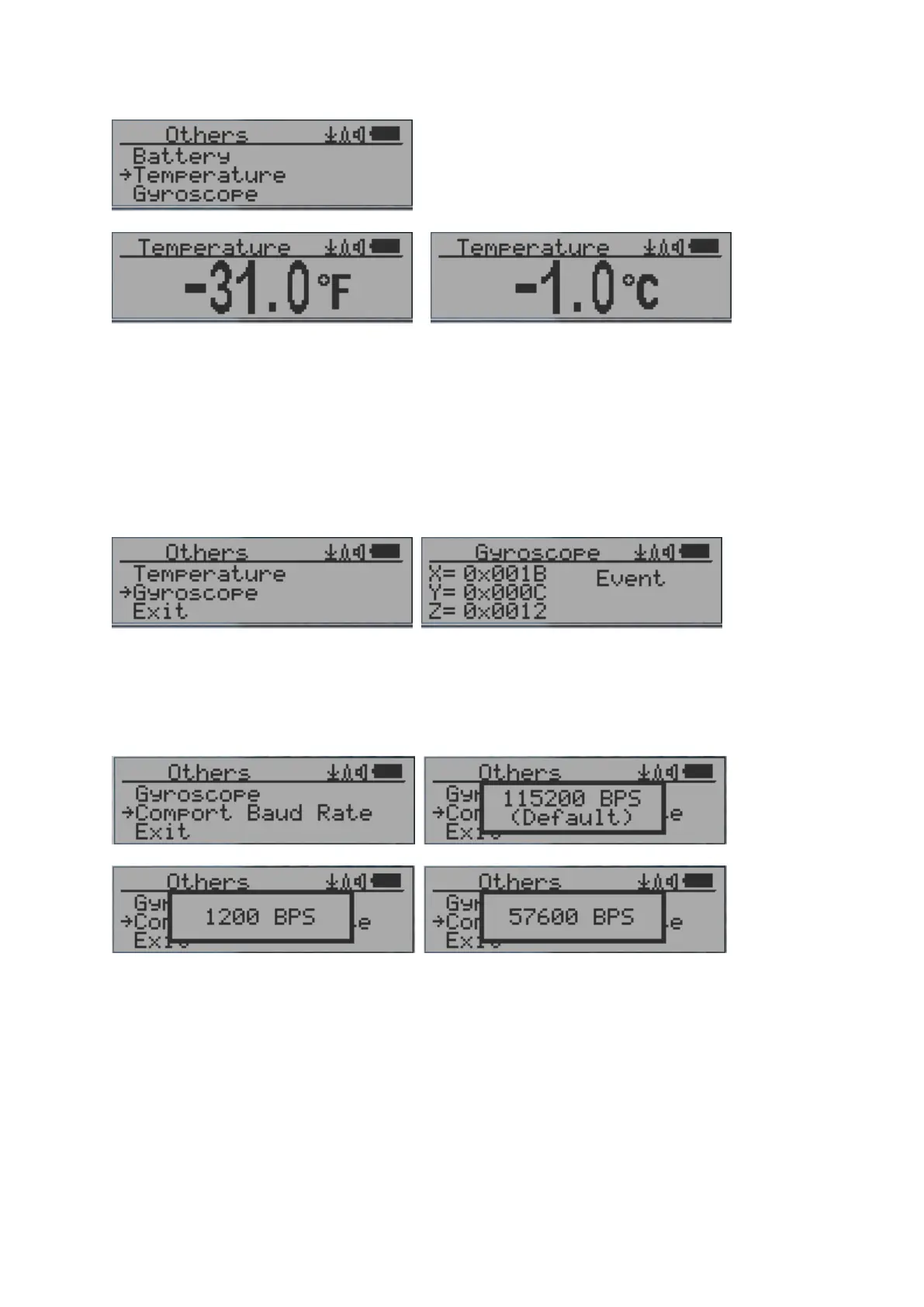 1200,2400,4800,9600,14400,19200,28800, 38400,57600,115200. Pressing Key4 changes the
