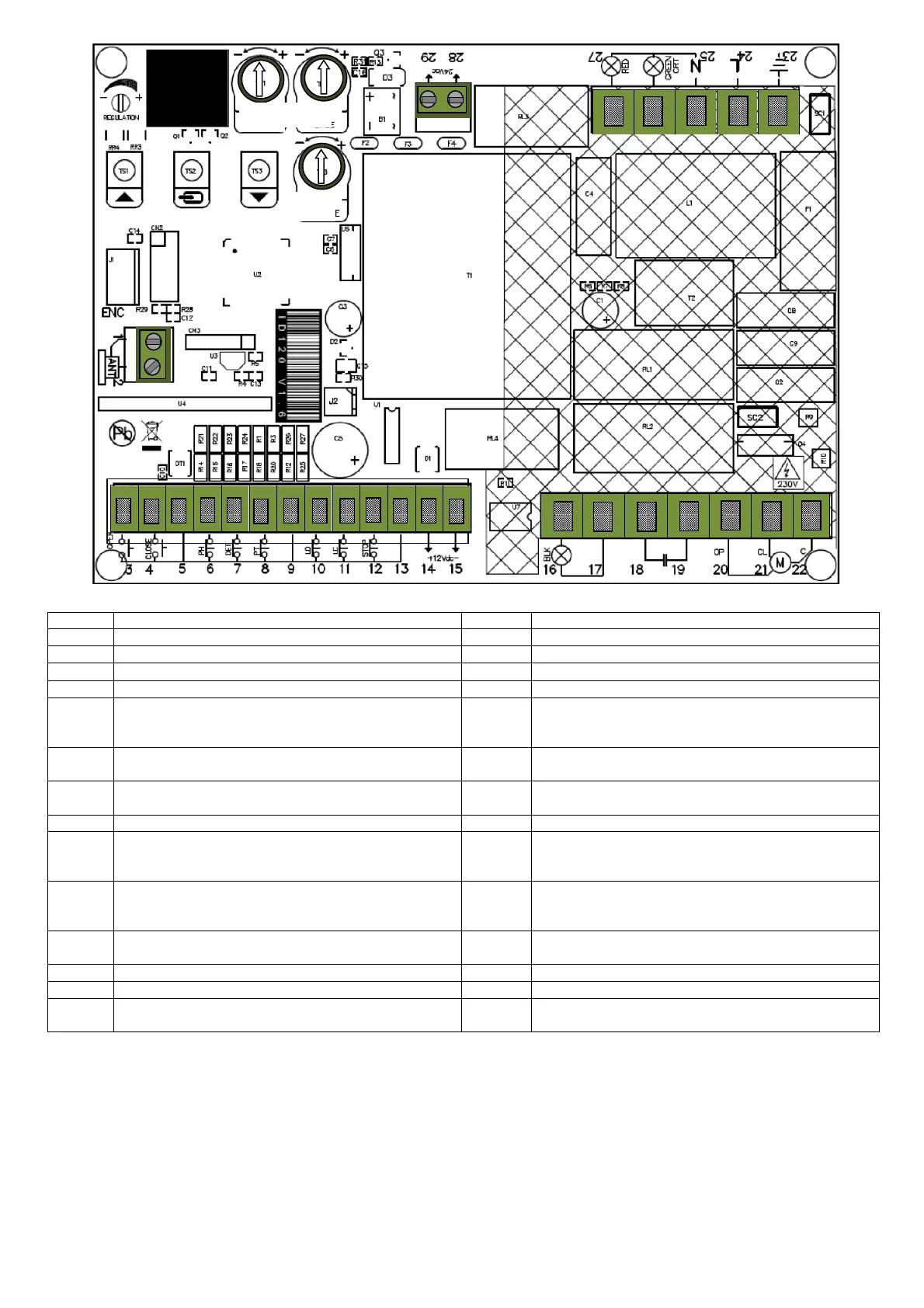 Photocell input (NC - NO) see advanced menu PC