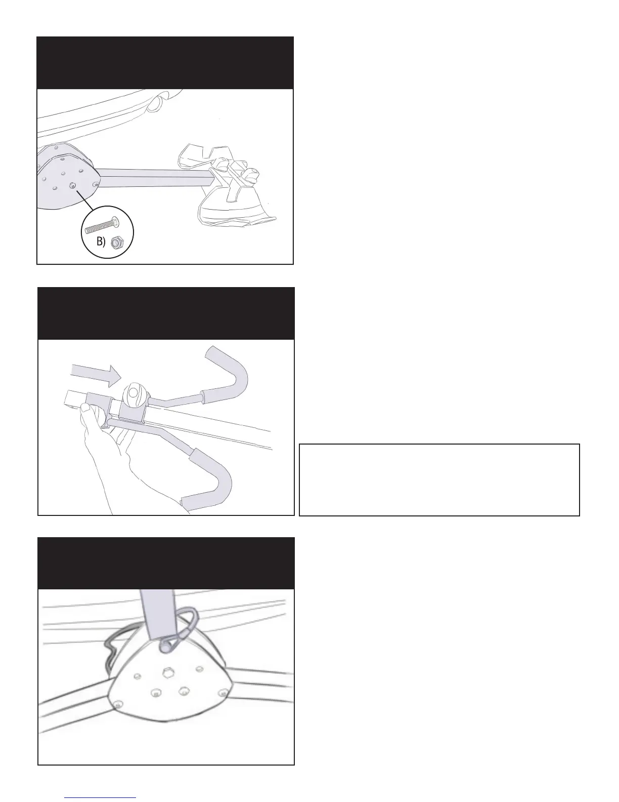 carriage bolt(B) into lower hole, place lanyard loop(D) around bolt