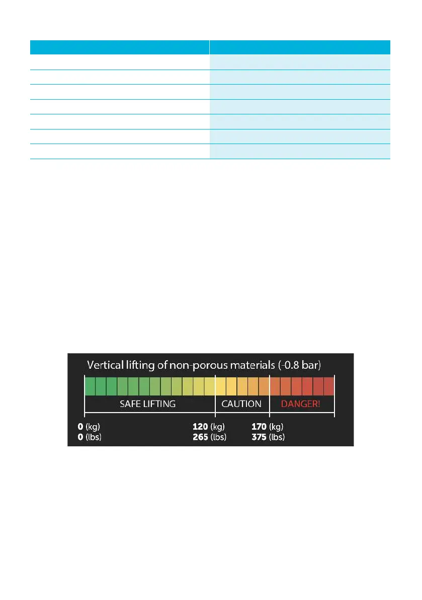 caseshouldtheNemoGRABO®beusedtoliftmorethan170kg(375lbs).Usethechartbelowto