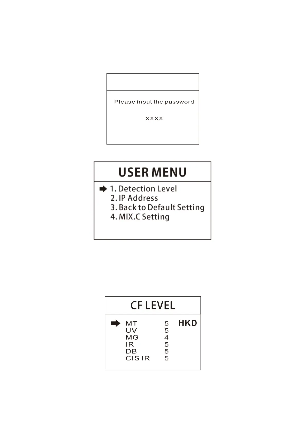 3.1 If you select to enter ‘User Menu’, you will be requested to input a password with the following