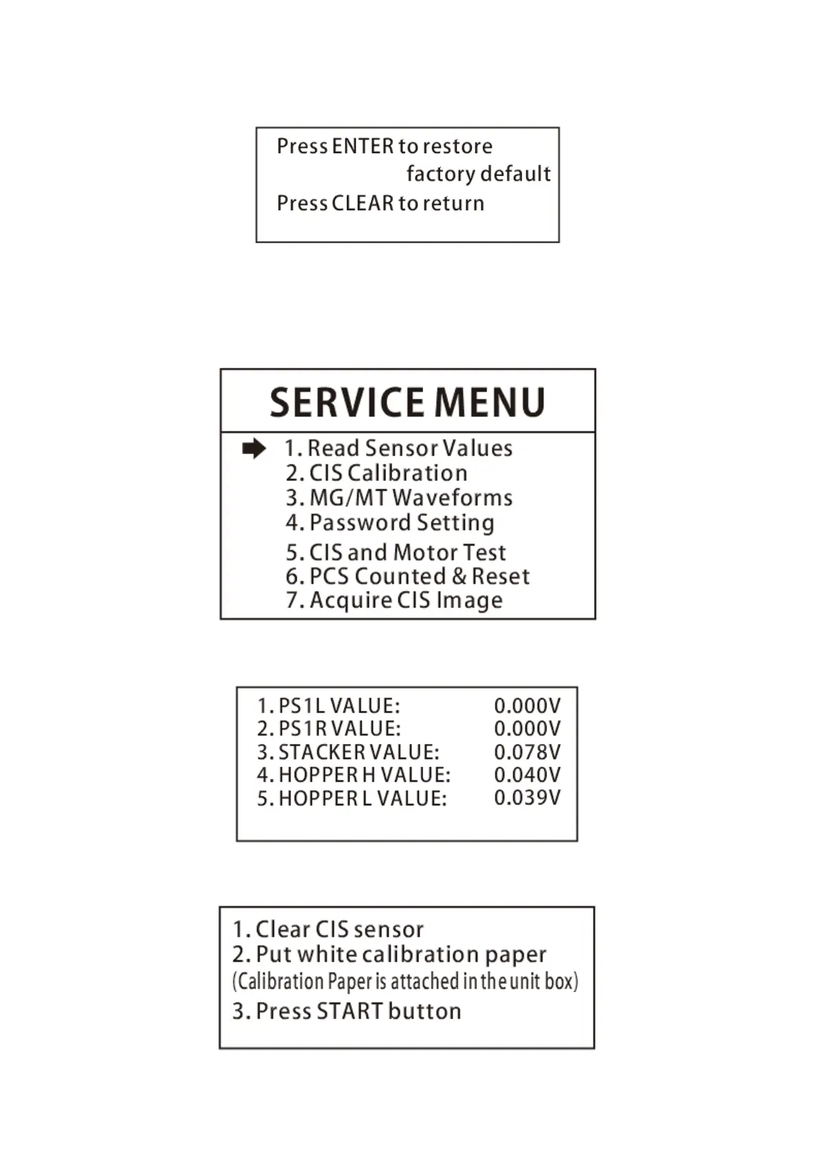 3.2 If you select to enter ‘Service Menu’ under the main menu, you will be requested to input the