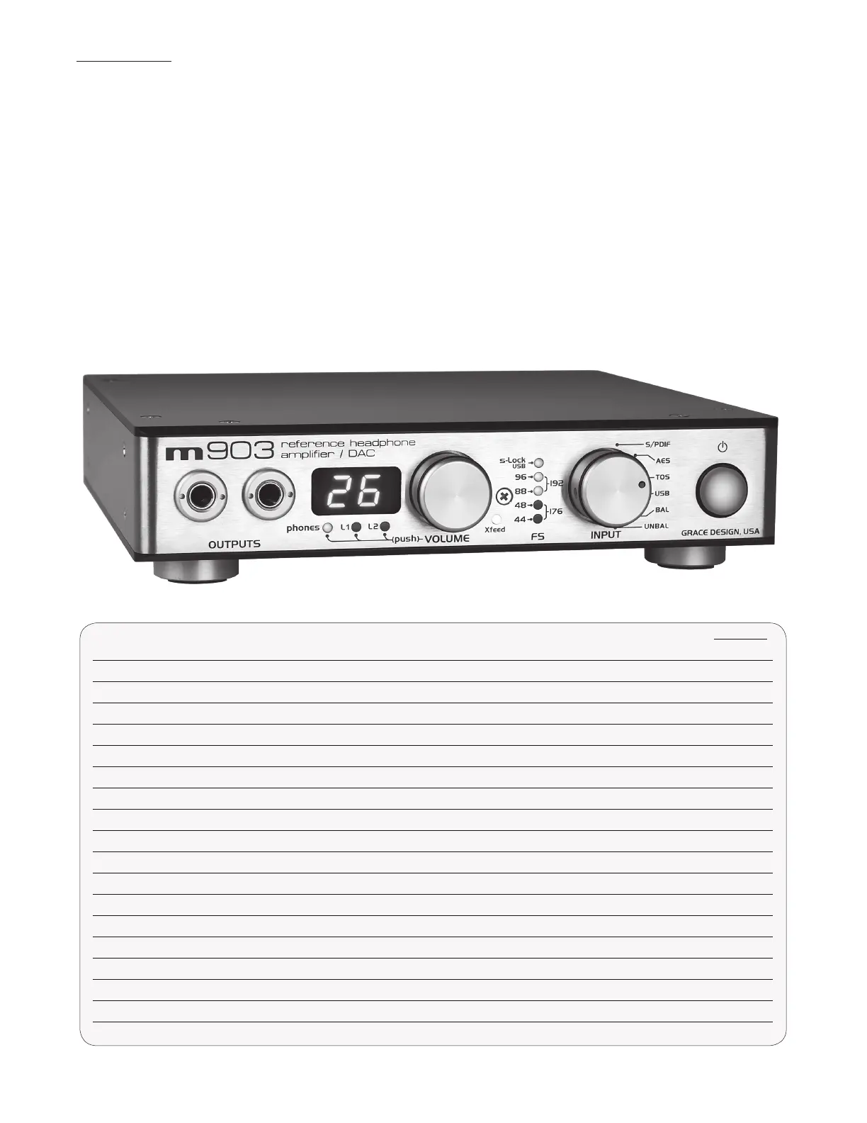 Thanks for purchasing the Grace Design m903 reference headphone amplier / DAC / monitor controller. The m903 rep-