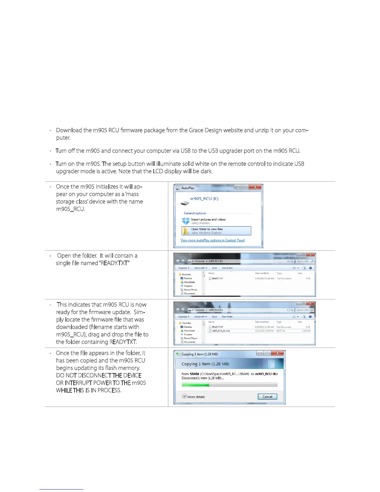 • Download the m905 RCU firmware package from the Grace Design website and unzip it on your com-