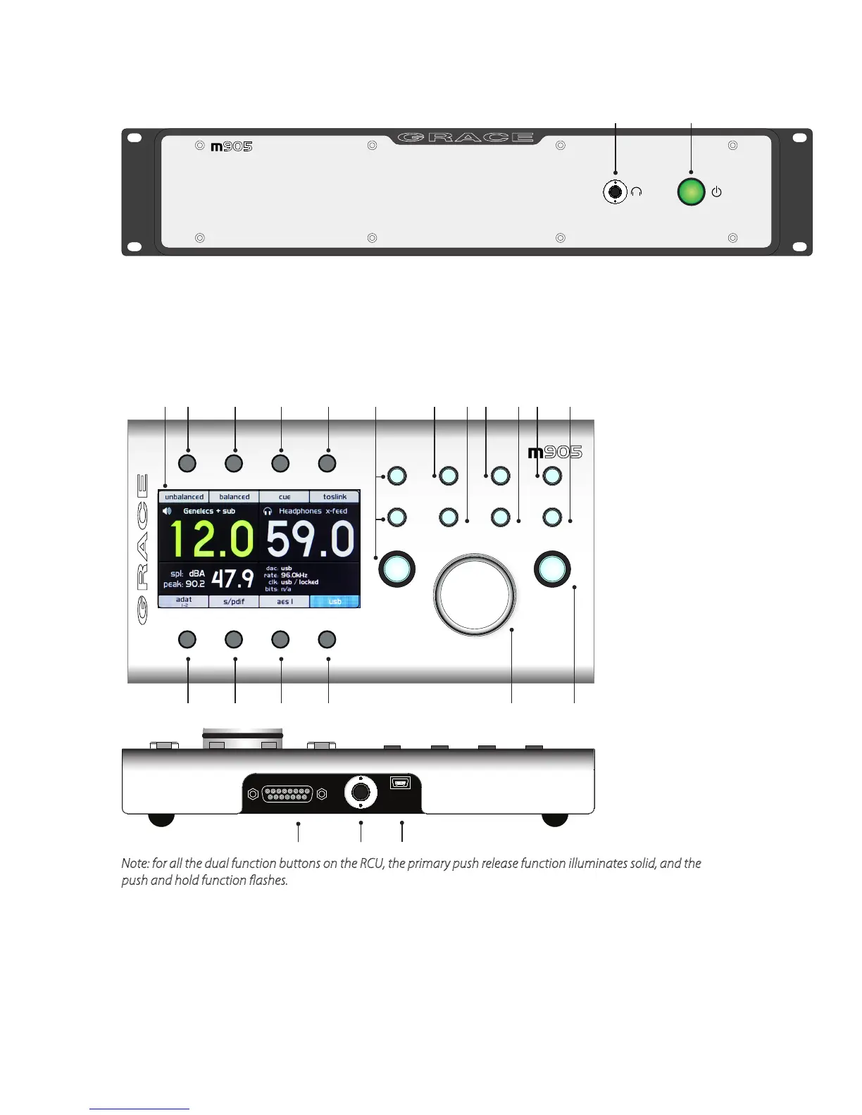 Note: for all the dual function buttons on the RCU, the primary push release function illuminates solid, and the