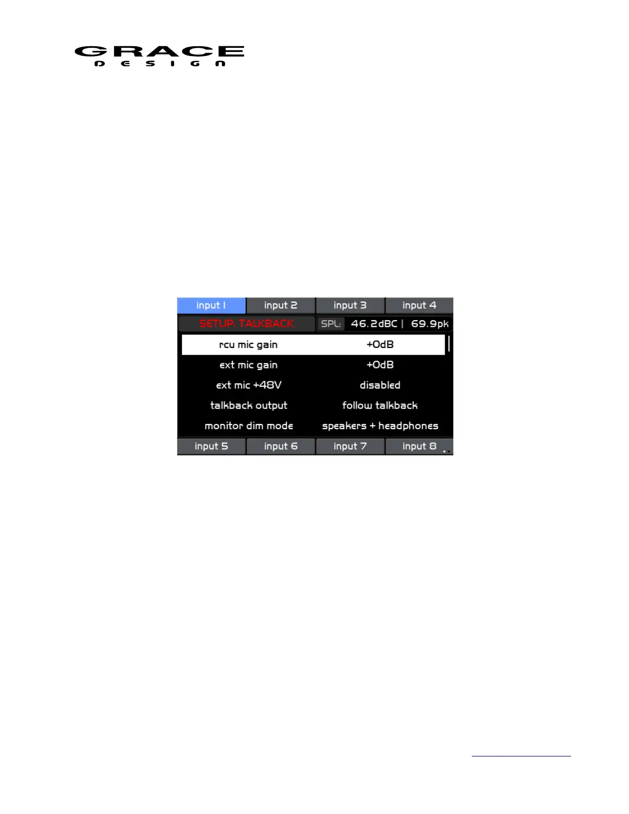 • ext mic +48V Enables or disables +48V phantom power for the ACU talkback
