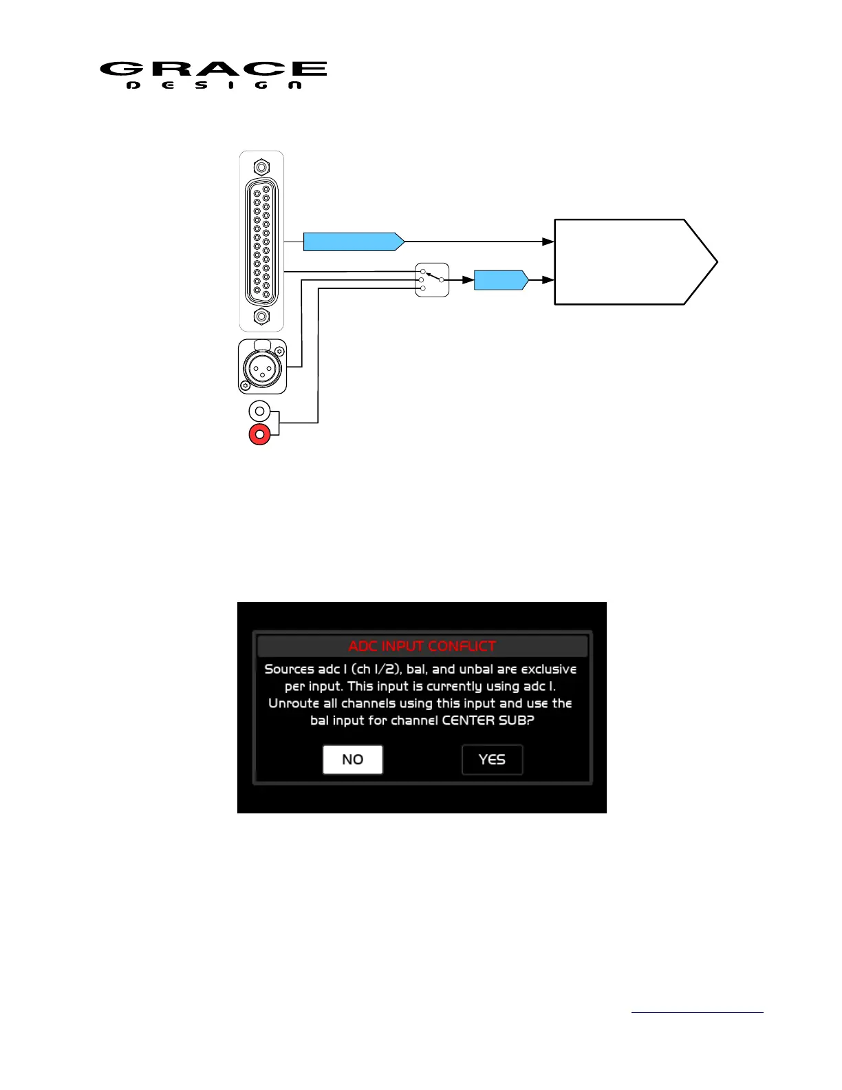 Grace m908 - Illustration 99: ADC Stereo Input Routing; Illustration 100: ADC Input Conflict