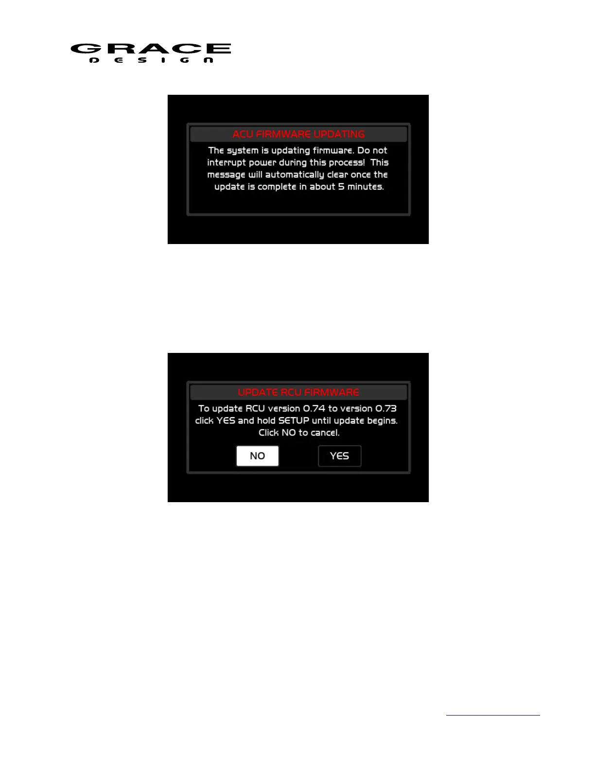 version. Selecting "NO" will bypass the RCU firmware update process. (The user will be