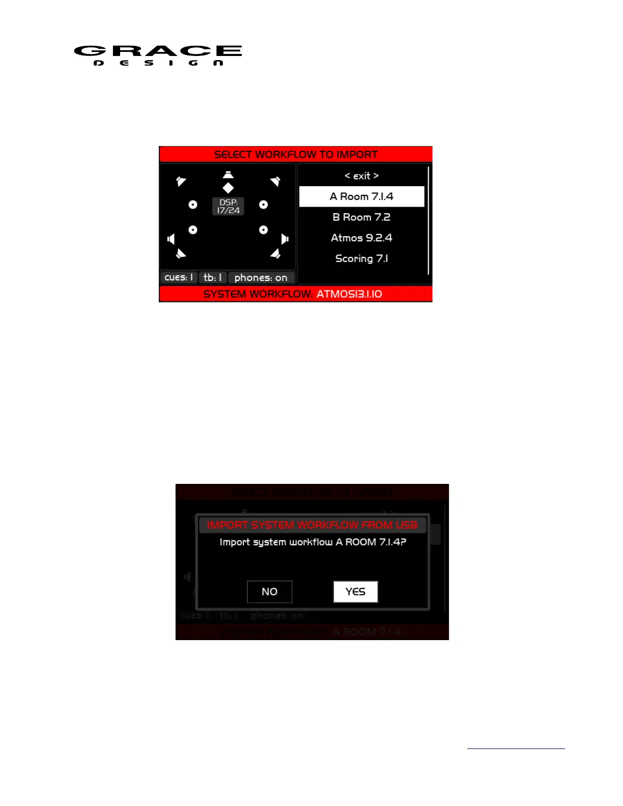 be displayed on the left window. Push the VOLUME encoder to select a workflow to import.