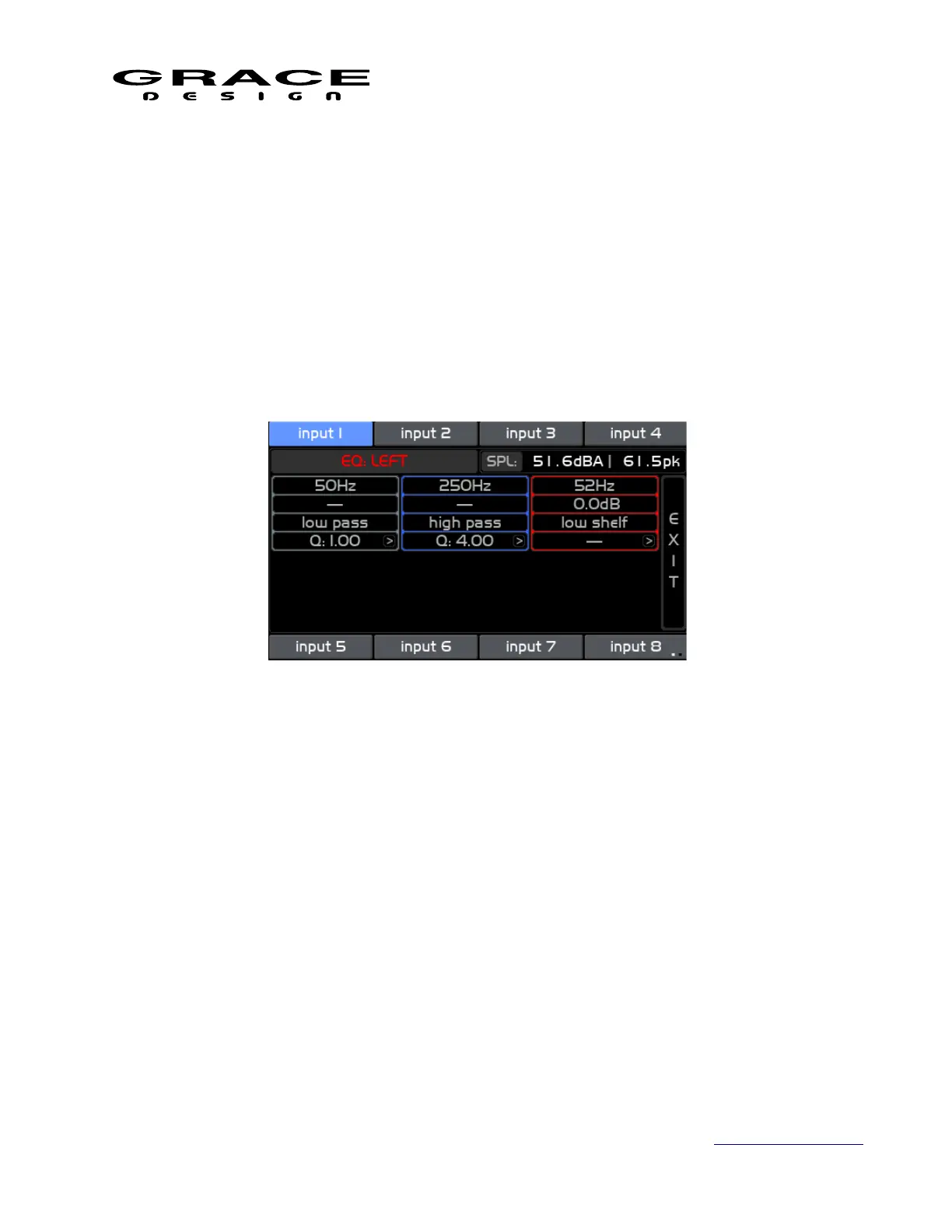 • Hz The center frequency or shelf frequency of the selected filter. Range is 10Hz-20kHz
