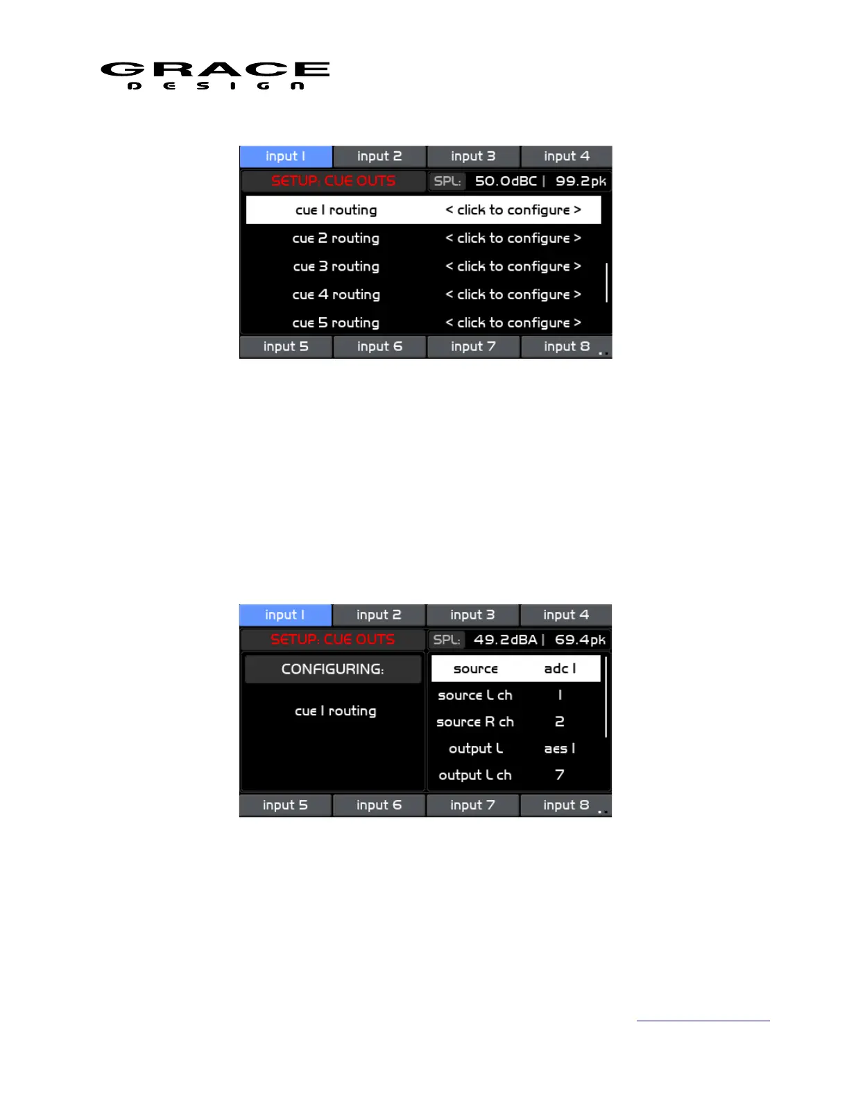 • cue X routing Clicking on this will enter the cue routing configuration screen. This is