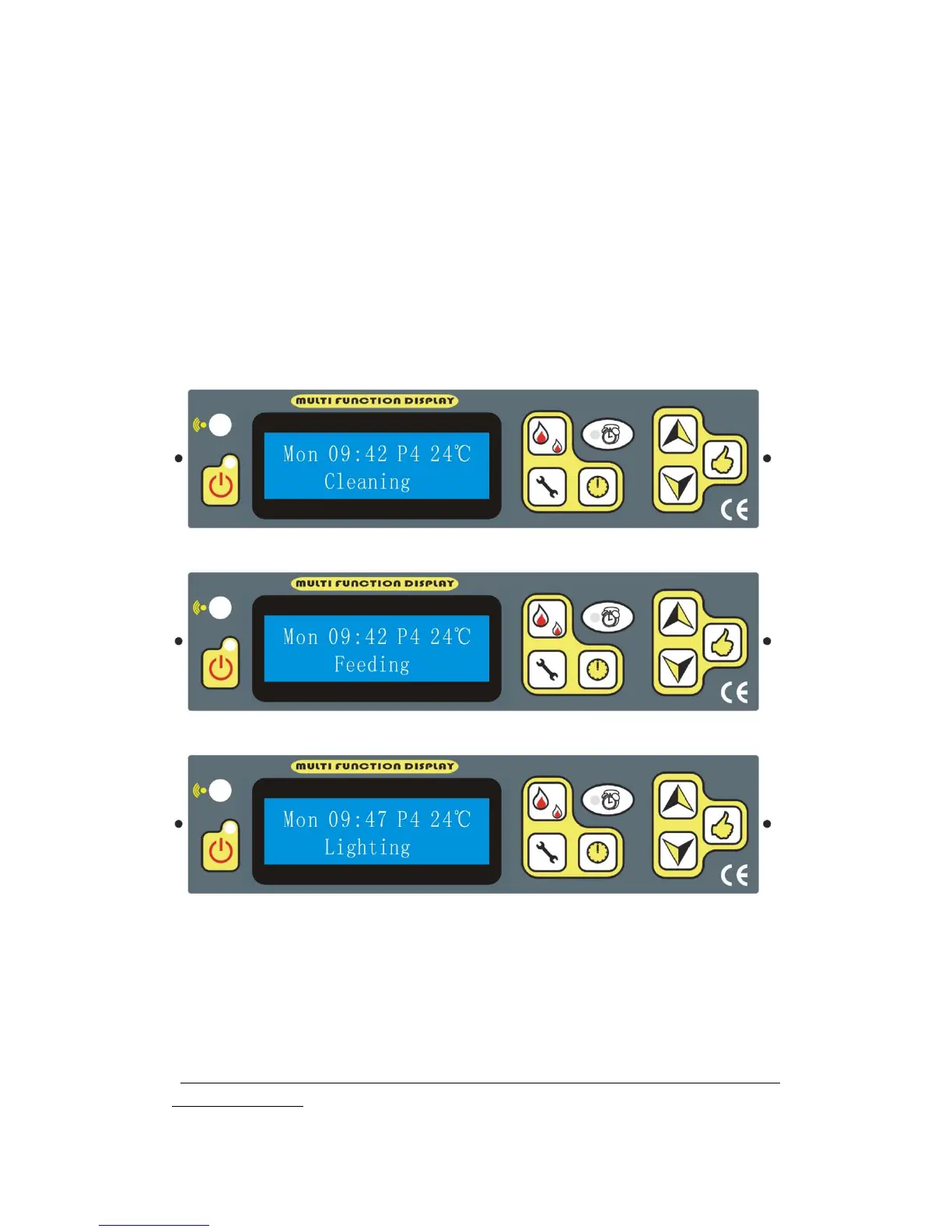 switching on, the heater performs the brazier cleaning and displays the following wording:
