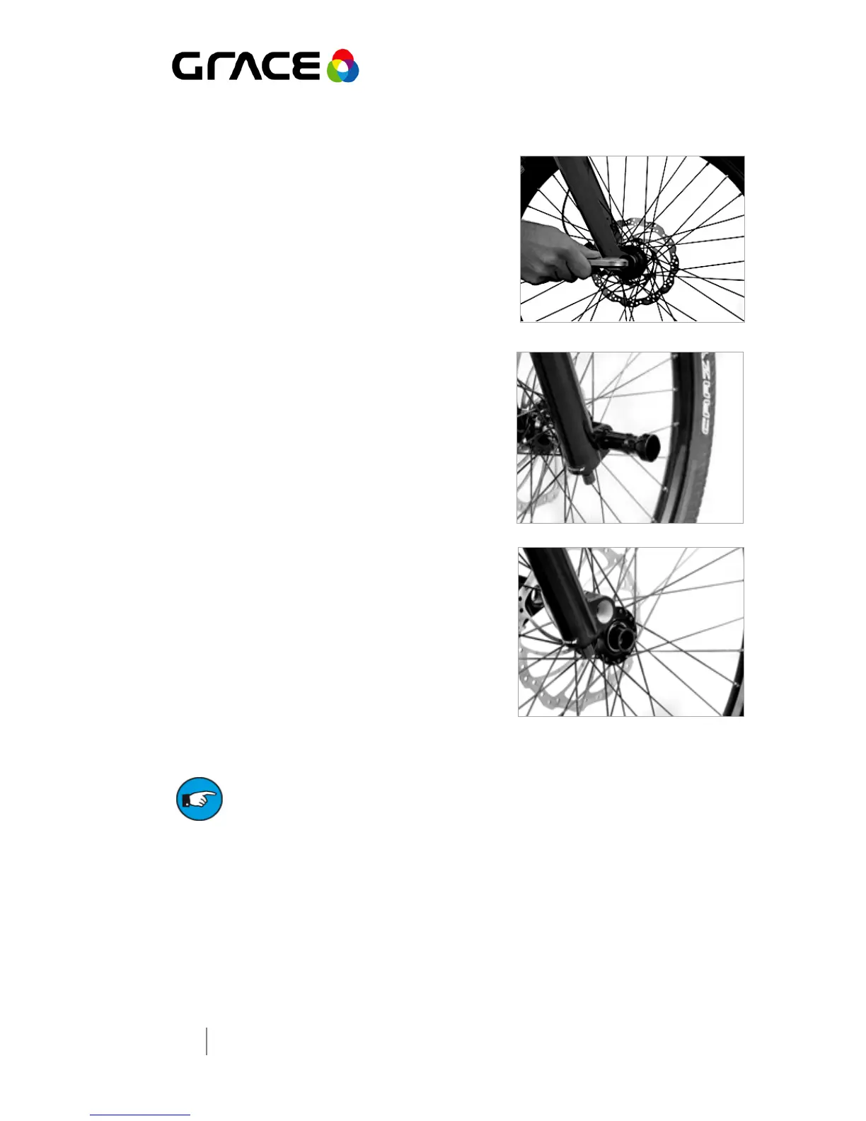 Grace ONE - Front Wheel Maintenance; Front Wheel Disassembly Steps; Reminder: Use Brake Pad Retainer