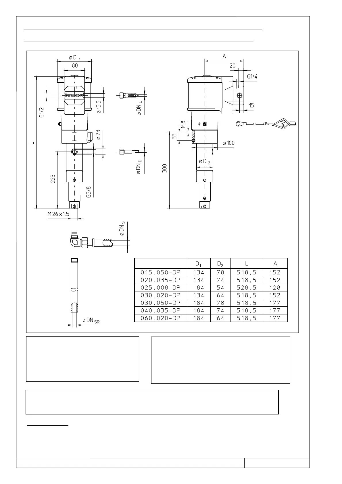 DIAMETER OF CONNECTIONS, MOUNTING POSITION